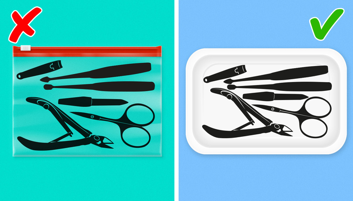 Αυτή θα πρέπει να είναι η πρώτη σας προτεραιότητα, καθώς η περιοχή κάτω από τα νύχια είναι γεμάτη βακτήρια και κατά συνέπεια το να μην πλένετε τα εργαλεία σας μπορεί να σας δημιουργήσει πρόβλημα. Συνεπώς αποστειρώστε τα με οινόπνευμα πριν και μετά από κάθε χρήση.