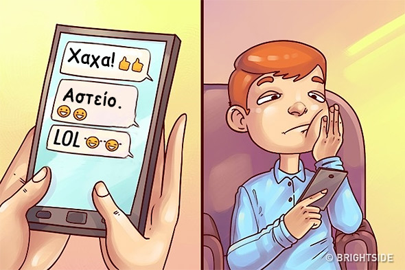 – Όταν μιλάμε με μηνύματα στο κινητό με το άτομο που μας ενδιαφέρει, έχουμε συνέχεια το ύφος «Μπορεί και να της έστειλα βλακεία πάλι! Μήπως το παράκανα;». Αλλά τότε είναι ήδη αργά.
