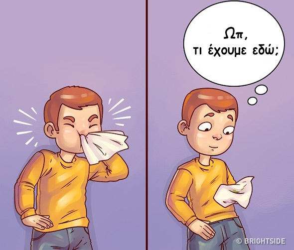 – Κλασική σκηνή, κλασική ατάκα. Όταν ο κόσμος σείεται με ένα μας φτάρνισμα, το οποίο φυσικά δεν έχουμε καλύψει με το χέρι μας (εξάλλου, μόνοι μας είμαστε), το αποτέλεσμα είναι κάπως έτσι: