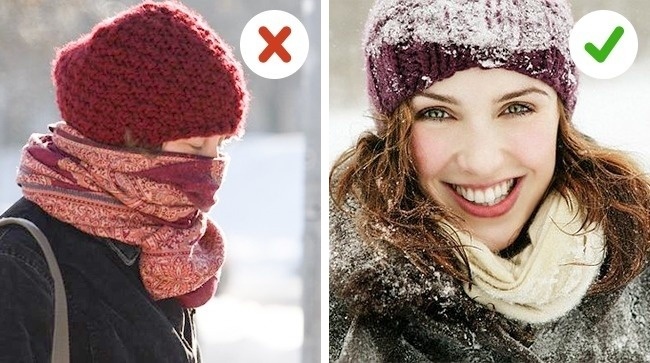 3. Το τυλιγμένο κασκόλ,γύρω από τη μύτη και το στόμα: Αυτό, είναι λάθος, διότι μπορεί να προκαλέσετε ερεθισμούς. Γι’ αυτό, καλύτερα να καλύπτεται μόνο το στόμα σας και να αποφεύγετε την κάλυψη της μύτης σας.