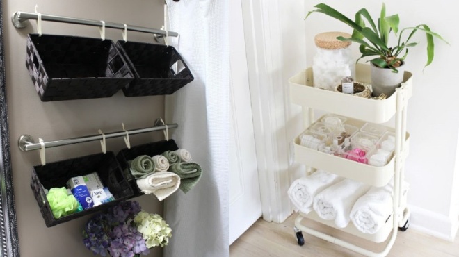 – Άλλος ένας τρόπος για να εκμεταλλευτείτε τον χώρο πάνω από την τουαλέτα είναι να βάλετε δύο μπάρες πάνω στις οποίες θα κρεμάσετε μερικά καλάθια. Φυσικά μπορεί να λειτουργήσει και σε οποιονδήποτε τοίχο.