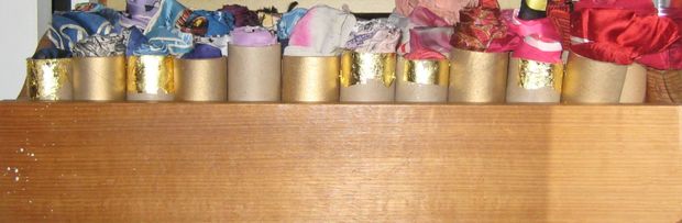 Βάψτε τα ρολά και τοποθετήστε τα όπως στην εικόνα πάνω σε ένα χαρτόκουτο. Έτσι θα μπορείτε πολύ εύκολα να οργανώσετε όλα τα πράγματα του γραφείου σας.