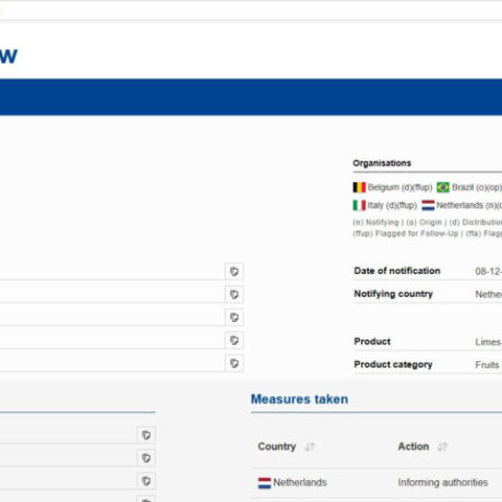 Η Ολλανδία εξέδωσε στις 8 Δεκεμβρίου προειδοποίηση για την παρουσία χλωρπυρίφου, ενός επικίνδυνου φυτοφαρμάκου, σε λεμόνια εισαγόμενα από τη Βραζιλία. Η ανάλυση έδειξε ότι τα υπολείμματα ξεπερνούν τα επιτρεπόμενα όρια (0,032 mg/kg αντί για 0,01 mg/kg), γεγονός που καθιστά το προϊόν πιθανώς σοβαρό κίνδυνο για την υγεία των καταναλωτών. Πρόκειται για ένα νευροτοξικό φυτοφάρμακο με τη δραστική ουσία χλωροπυριφός (chlorpyrifos), το οποίο ενοχοποιείται κυρίως για την γέννηση λιποβαρών νεογνών, προβλήματα διάσπασης προσοχής και μειωμένου IQ στα παιδιά.