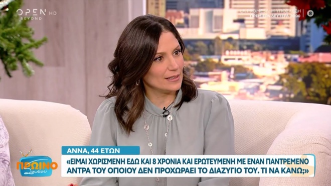 «Είμαι χωρισμένη εδώ και 8 χρόνια και ερωτευμένη με έναν παντρεμένο άντρα του οποίου δεν προχωράει το διαζύγιό του. Τι να κάνω;», λέει η Άννα 44 ετών.