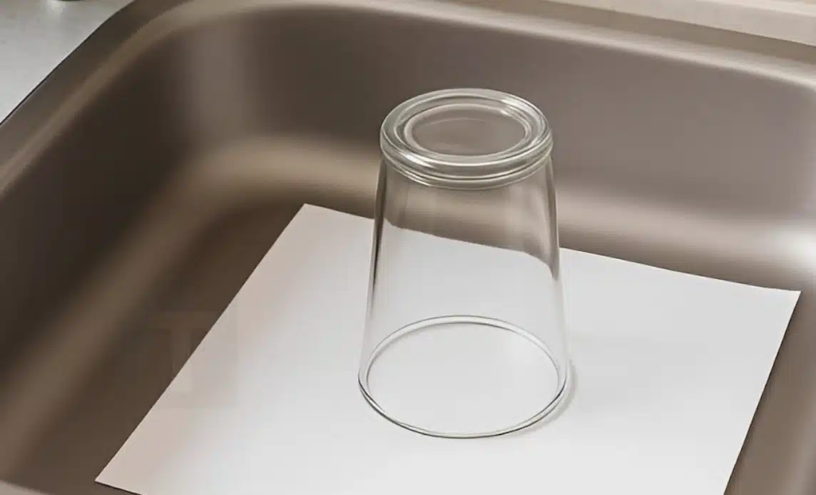 Το μόνο που χρειάζεστε είναι ένα φύλλο χαρτιού κουζίνας (ή ακόμη και χαρτί υγείας) τοποθετημένο πάνω από την τρύπα του νεροχύτη και από πάνω ένα αναποδογυρισμένο ποτήρι ή κούπα.