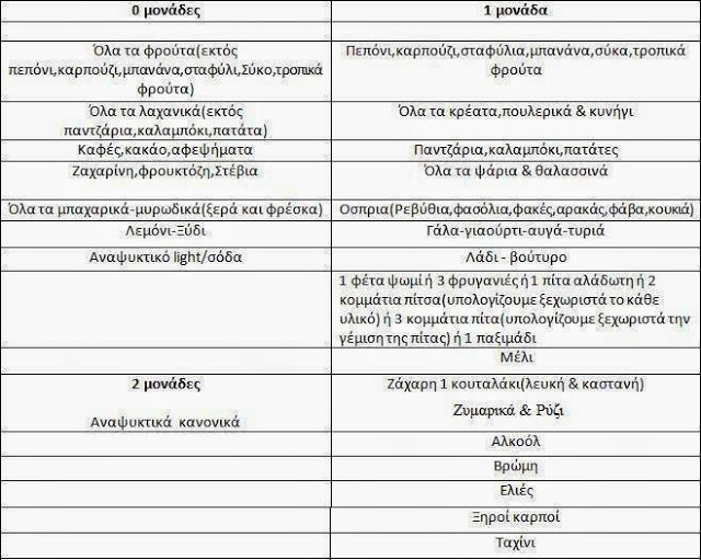 Δίαιτα των μονάδων – Συμβουλές: Ακολουθούν σημαντικοί πίνακες και παραδείγματα