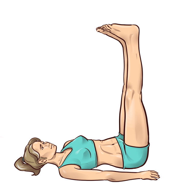 Δεύτερο μέρος άσκησης: είστε ξαπλωμένοι ανάσκελα, με τα πόδια σηκωμένα και τα γόνατα ελαφρώς λυγισμένα.