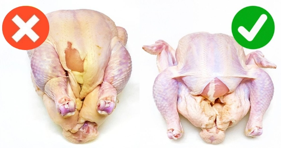 Κοτόπουλο: Για να είμαστε απολύτως σίγουροι οτι το κοτόπουλο είναι φρέσκο, ελέγξτε την αφή του: το δέρμα του πρέπει να είναι καθαρό και στεγνό. Υγρό δέρμα σημαίνει ότι το κοτόπουλο ήταν άρρωστο, και υποβλήθηκε σε επεξεργασία με αντιβιοτικά. Να θυμάστε ότι ακόμη και ένα φρέσκο κοτόπουλο μπορεί να είναι άγευστο και σκληρό, μόνο και μόνο επειδή είναι μπαγιάτικο. Το δέρμα των πουλερικών είναι λιπαρό, κίτρινο, και στα μικρά κοτόπουλα – χλωμό, με ορατές σημάδια στα πόδια.