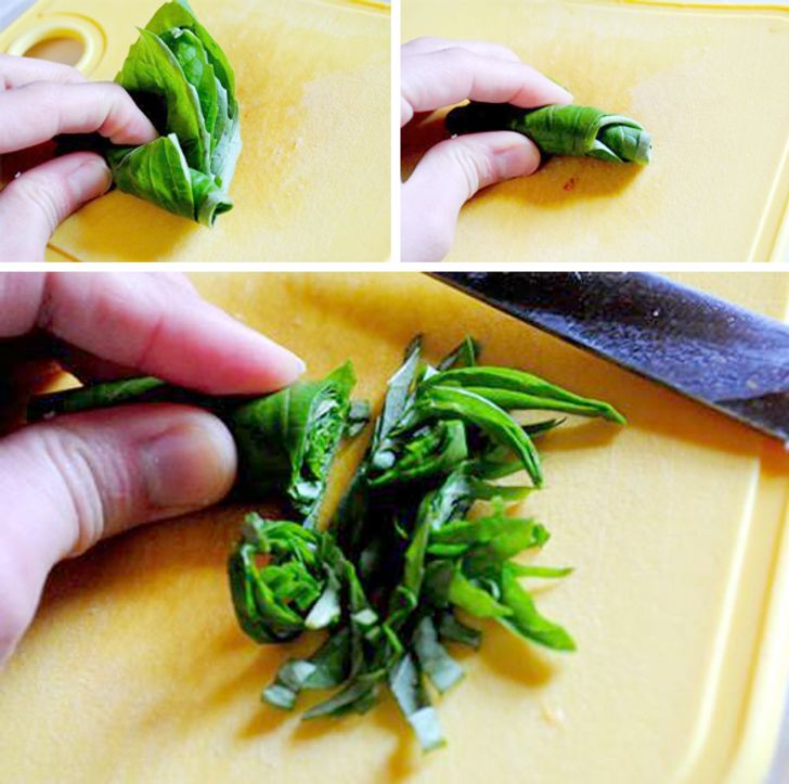 Κόψτε γρήγορα βότανα με μεγάλα φύλλα, όπως βασιλικό ή φασκόμηλο, διπλώνοντας τα. Εδώ είναι οι λεπτομέρειες.