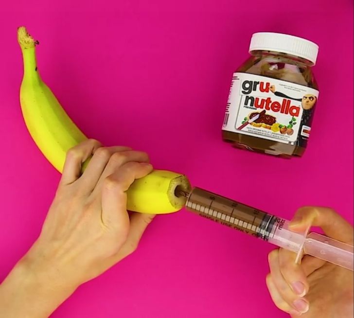 Αν σας αρέσουν τα γλυκά και οι μπανάνες, αυτή η συνταγή θα γίνει σίγουρα η αγαπημένη σας απόλαυση. Πάρτε μια μπανάνα, λίγο σοκολάτα, ένα καλαμάκι και μια σύριγγα. Κολλήστε το καλαμάκι στο κέντρο της μπανάνας, τραβήξτε την επάλειψη με τη σύριγγα και σπρώξτε την στο καλαμάκι. Βάλτε την μπανάνα σας στο ψυγείο για μια ώρα και η λιχουδιά σας είναι έτοιμη. Εδώ θα βρείτε τις λεπτομέρειες.