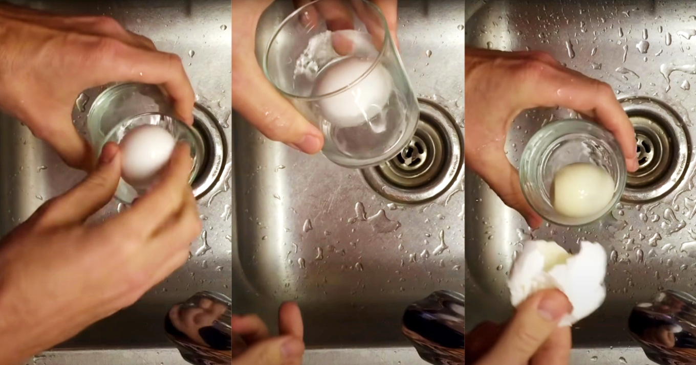 Για να ξεφλουδίσετε γρήγορα ένα βραστό αυγό, βάλτε το σε ένα ποτήρι ή ένα μικρό βάζο με νερό και ανακινήστε το για λίγα δευτερόλεπτα. Ορίστε! Το αυγό είναι ξεφλουδισμένο!