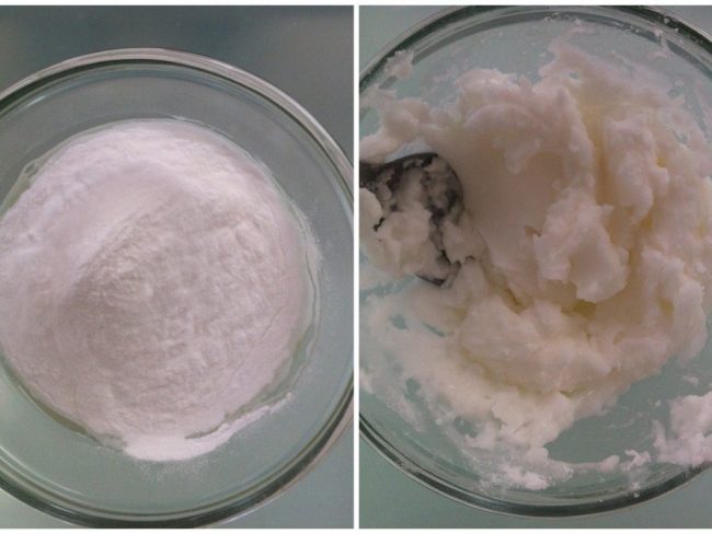 1. Μισή κούπα Βόρακας. 2. Μισή κούπα αλάτι. 3. Μισή κούπα διττανθρακική (μαγειρική) σόδα. 4. Μισή κουταλιά αιθέριο έλαιο λεμονιού (προεραιτικά για το άρωμα). 5. Μισή κουταλιά πράσινο σαπούνι τριμμένο, διαλυμένο σε ένα ποτήρι νερό.