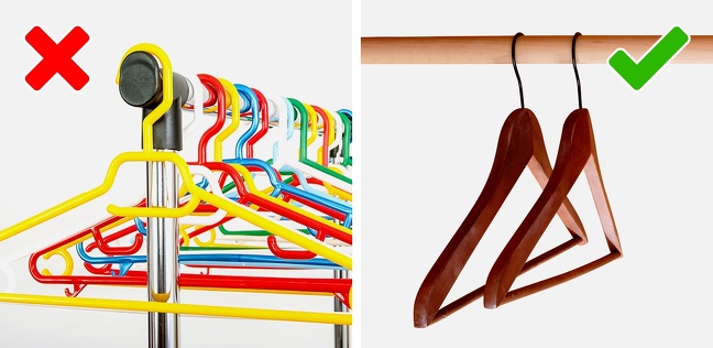 4. Προτίμησε τις ξύλινες κρεμάστρες: Γνώριζες ότι οι ξύλινες κρεμάστρες μπορεί να αποτελέσουν ένα εξαιρετικό εργαλείο που θα απορροφήσει την υγρασία από τα ρούχα; Και φυσικά αυτό το φυσικό υλικό δεν θα καταστρέψει τα ρούχα σου.