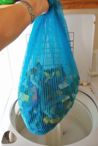 Τα Lego κομμάτια, κυρίως τα μικρά μπορεί να είναι πηγή μικροβίων. Για νε α τα καθαρίσετε ένα προς ένα, θα χρειαστείτε χρόνο. Μπορείτε λοιπόν να τα βάλετε όλα σε μια τσάντα α πλυντηρίου και στο πλυντήριο. Προσθέστε λίγο σαπούνι και στη συνέχεια απλά αφήστε τα να στεγνώσουν.,