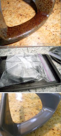 Είναι από τα πιο απλά τιπς. Πάρτε ¼ φλιτζάνι αμμωνία και σφραγίστε την επιφάνεια με μια πλαστική σακούλα. Αφήστε το να καθίσει για μια νύχτα και στη συνέχεια θα πρέπει να σκουπίσετε με ένα καθαρό σφουγγάρι. Το ίδιο κάντε και με τις σχάρες.