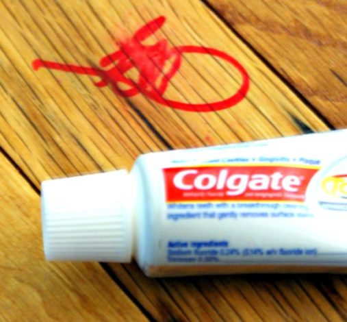 Εάν έχετε ένα παιδί που μόλις ανακάλυψε τη μαγεία των ανεξίτηλων μαρκαδόρων, τότε είναι πολύ πιθανό να βρείτε τα έργα τέχνης του στο δάπεδο και τα έπιπλα. Μην ανησυχείτε, αυτό μπορεί να διορθωθεί. Απλώστε οδοντόκρεμα επάνω στον μαρκαδόρο και τρίψτε με ένα υγρό πανί ή χαρτί κουζίνας.