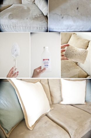 Για να καθαρίσετε έναν καναπέ μικροϊνών χρειάζεστε ένα άσπρο σφουγγάρι και αλκοόλ. Ψεκάστε με το αλκοόλ την λεκιασμένη περιοχή και τρίψτε με το σφουγγάρι. Αφήστε την περιοχή να στεγνώσει. Στη συνέχεια, τρίψτε με μια βούρτσα την περιοχή.