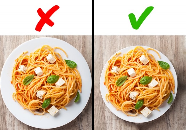 – Αγοράστε ένα φωτεινό τραπεζομάντιλο ή πιάτο: Η αντίθεση ανάμεσα στα πιάτα και το τραπεζομάντιλο θα ενεργοποιήσει την λεγόμενη ψευδαίσθηση Delboeuf: ένα κανονικό πιάτο με μια συνηθισμένη μερίδα φαίνεται μεγαλύτερο. Θα αισθανθείτε, ότι έχετε φάει περισσότερο παρότι οι μερίδες θα παραμένουν ίδιες.