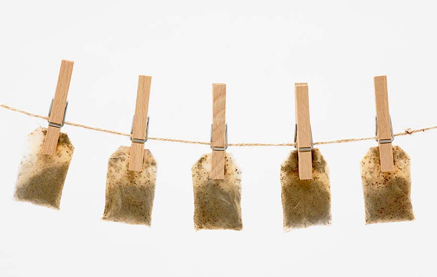 5. Φακελάκια τσαγιού: Κρατήστε 3-4 χρησιμοποιημένα φακελάκια τσαγιού και κάντε μια σύνθεση, δένοντάς τα με ένα κομμάτι σπάγκο. Θα μοσχοβολάει όλο το δωμάτιο.