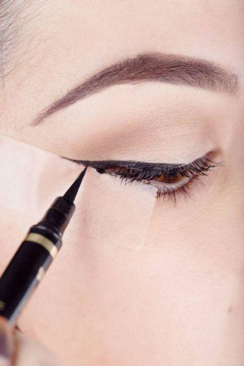 – Τελειοποιήστε το υγρό eyeliner: Χρησιμοποιήστε ένα κομμάτι ταινίας για να πετυχαίνετε κάθε φορά το eyeliner σας.