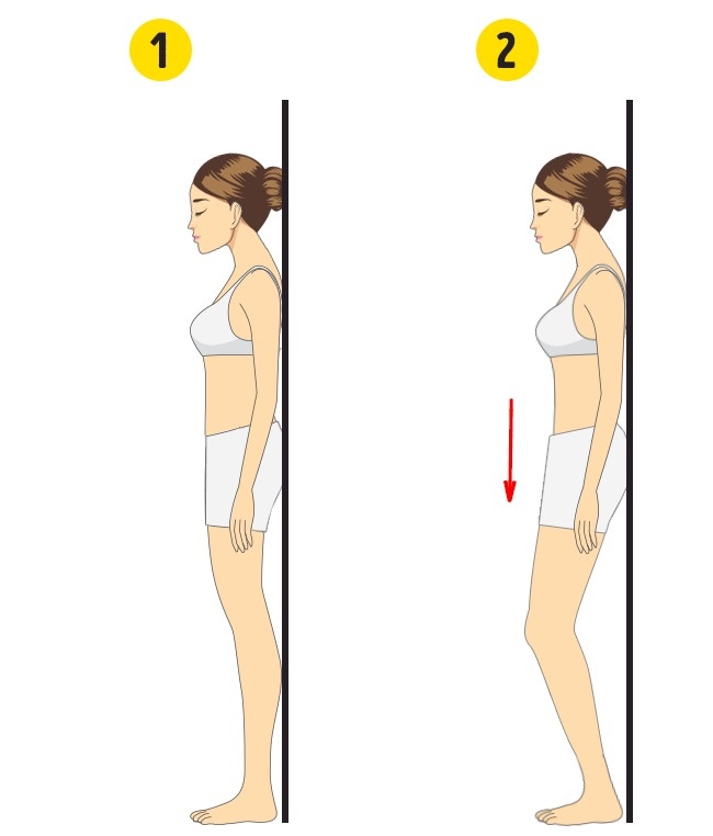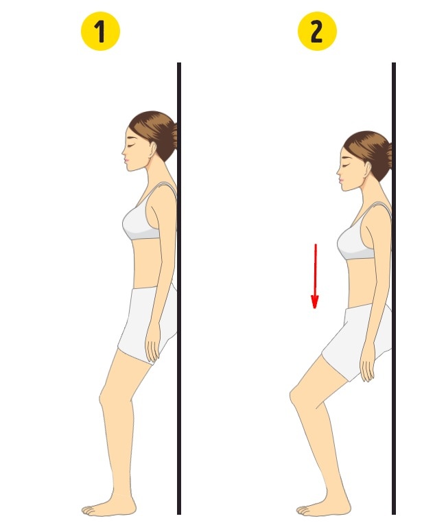 Στερεώστε την πλάτη σας σε έναν τοίχο και κρατήστε τα πόδια σας περίπου 35-40 εκατοστά μακριά από τον τοίχο. Αργά ξεκινήστε να πιέζετε τους γλουτούς σας στον τοίχο, λυγίζοντας τα γόνατά σας στο βαθμό που νιώθετε άνετα. Το χαμηλό σημείο της πλάτης σας πρέπει να πιέζεται στον τοίχο και δεν πρέπει να αισθάνεστε οποιαδήποτε δυσφορία κατά την άσκηση. Επαναλάβετε την άσκηση αρκετές φορές.