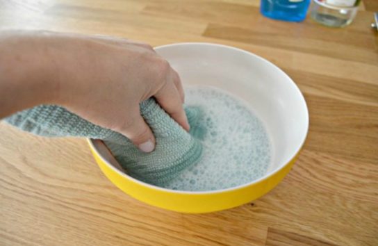 – Ξεκινήστε, ρίχνοντας το νερό, το απορρυπαντικό και το ξίδι μέσα σε ένα μπολ.