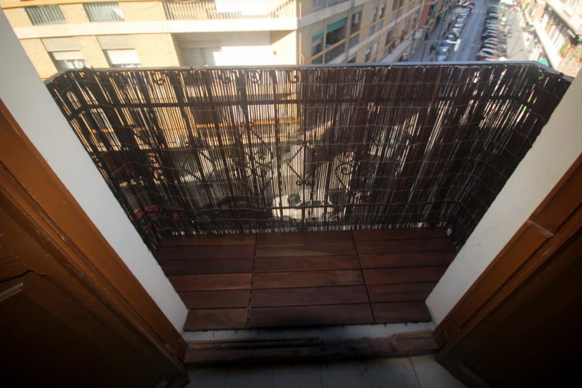 Έπειτα τοποθέτησε τη ψάθα γύρω από τα κάγκελα για περισσότερη ιδιωτικότητα.