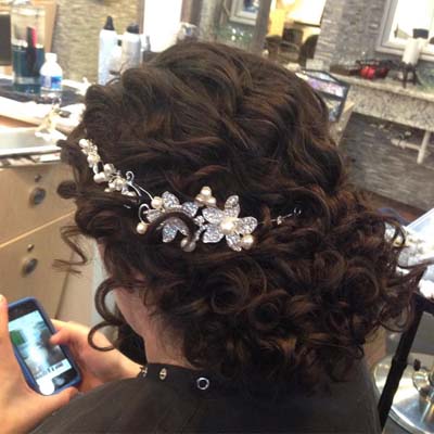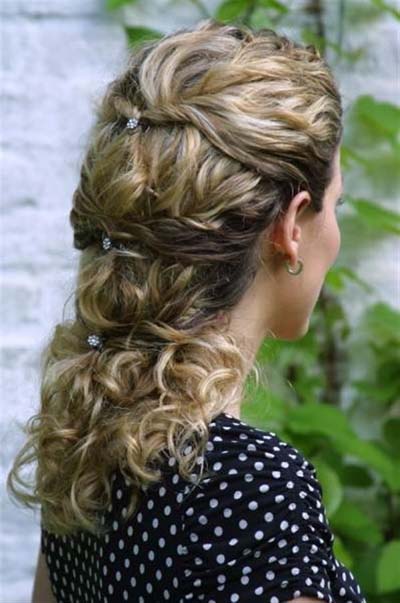 – Χτενίσματα για σγουρά μαλλιά πιασμένα: