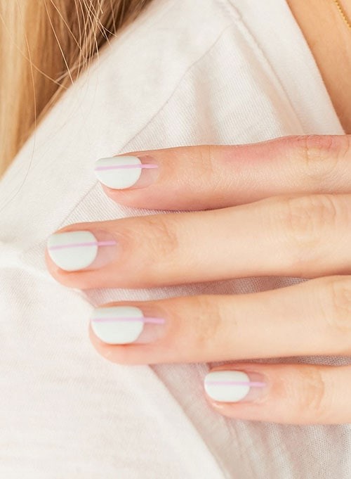 Κάνε μια ίσια κάθετη γραμμή και ανανέωσε τα νύχια σου στο λεπτό: Τα half moon nails με άβαφη ρίζα αποτελούν πλέον μια όμορφη πρόταση για το μανικιούρ. Κι αν το αποτέλεσμα αυτό σε ξενίζει ή σε ενοχλεί, κανένα πρόβλημα. Επέλεξε το χρώμα της αρεσκείας σου και με τη βοήθεια ενός λεπτού πινέλου μανικιούρ κάνε μια κάθετη γραμμή από την άκρη μέχρι τη ρίζα. Το αποτέλεσμα θα σε ξαφνιάσει ευχάριστα! Δεν έχεις σταθερό χέρι; Πάρε μια από τις αυτοκόλλητες ταινίες μανικιούρ και απλά κόλλησε την.