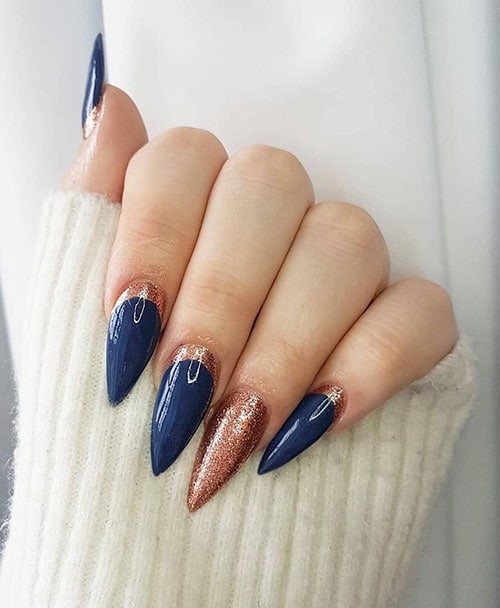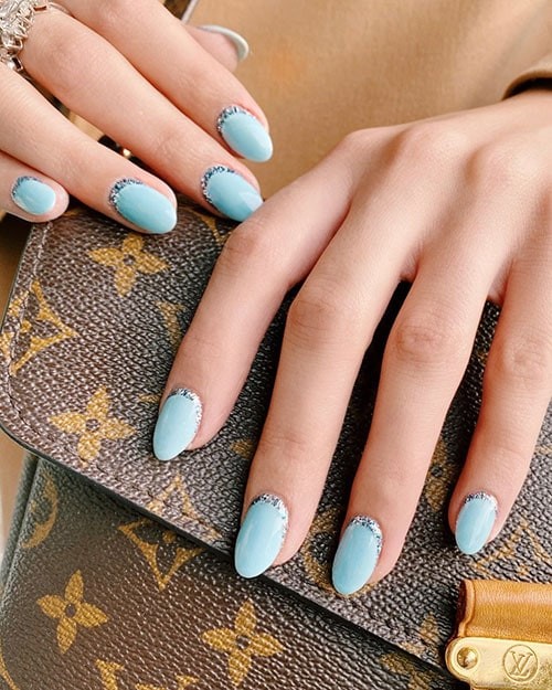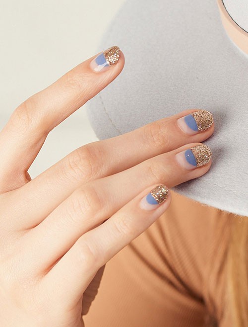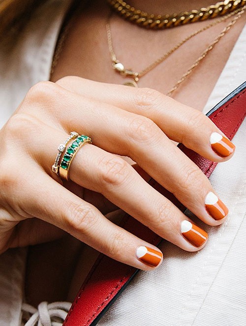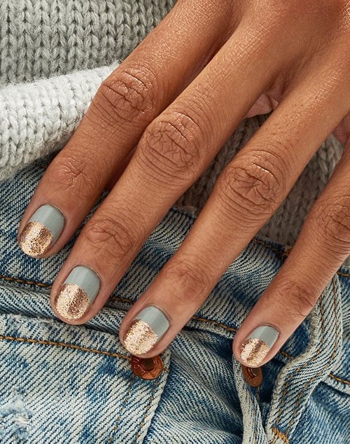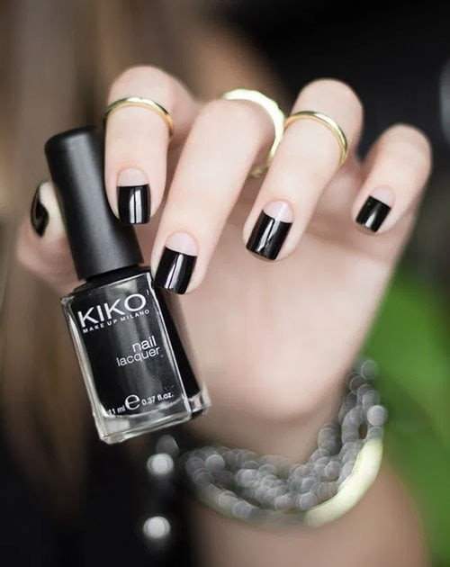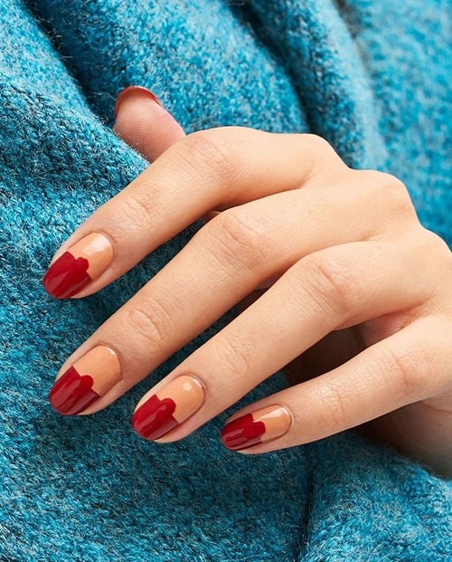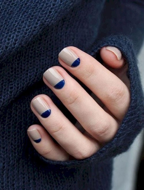 Δίχρωμο μανικιούρ με σχέδιο: Τα δίχρωμα νύχια αποτελούν μια όμορφη πρόταση για το μανικιούρ που έχει κατέβει. Απλά βάψε το μισό κάτω μέρος του νυχιού με όποιο χρώμα σου αρέσει. Στη συνέχεια απόλαυσε το ανανεωμένο σου σχέδιο μανικιούρ για μερικές ακόμη μέρες.