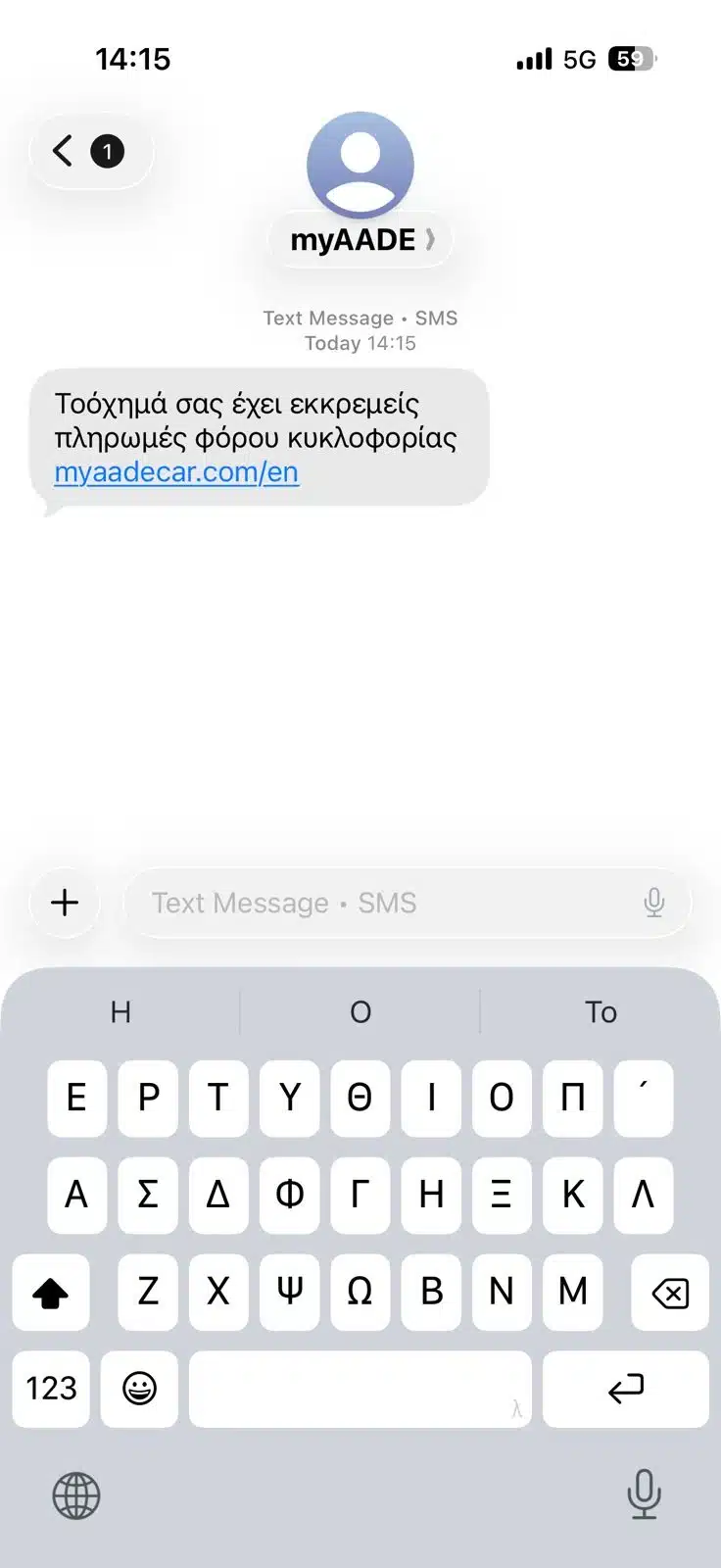 Νέο κύμα ηλεκτρονικής απάτης με ψεύτικα SMS για δήθεν απλήρωτα τέλη κυκλοφορίας βρίσκεται σε εξέλιξη, με την ΑΑΔΕ να καλεί τους πολίτες σε αυξημένη προσοχή.