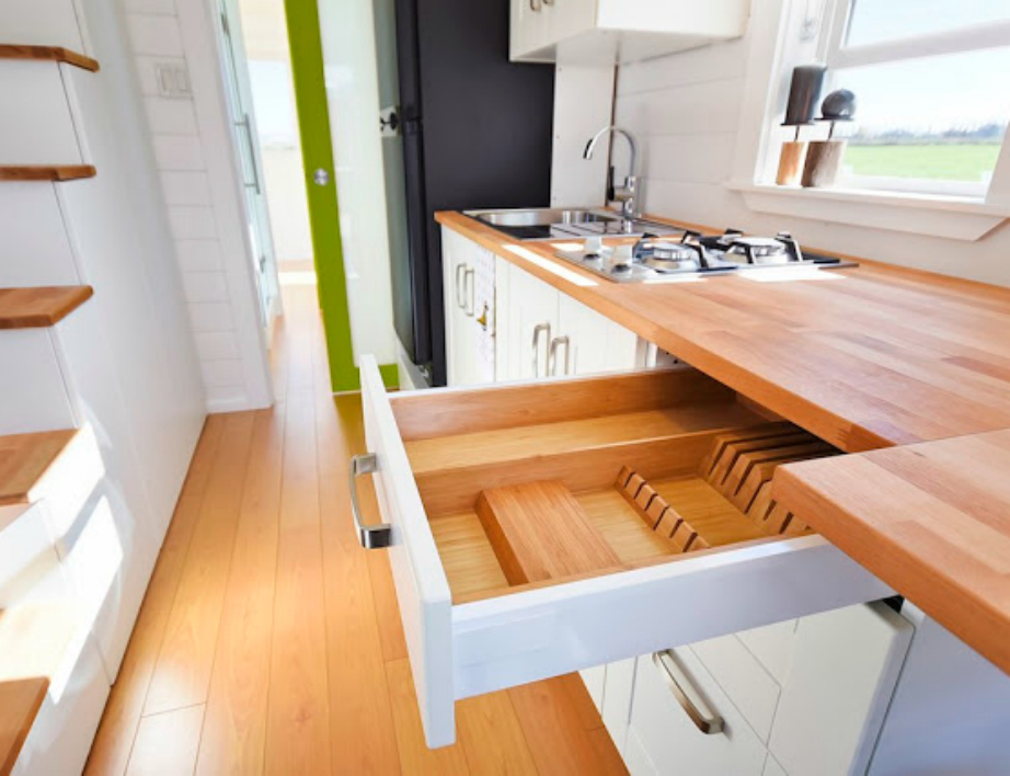 4. Ακόμα και το εσωτερικό των συρταριών είναι επενδυμένο με ξύλο. Το συγκεκριμένο διαθέτη και ειδική κατασκευή για την τοποθέτηση των μαχαιροπήρουνων.