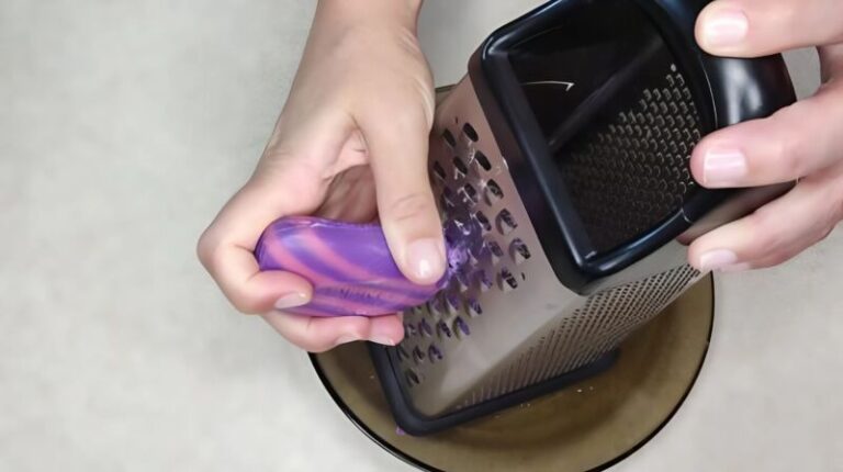 Τρίψτε το σαπούνι σε χοντρό τρίφτη. Αν έχετε μικρά κομμάτια σαπουνιού που έχουν περισσέψει, μην τα πετάξετε — είναι ιδανικά για αυτήν την εργασία.