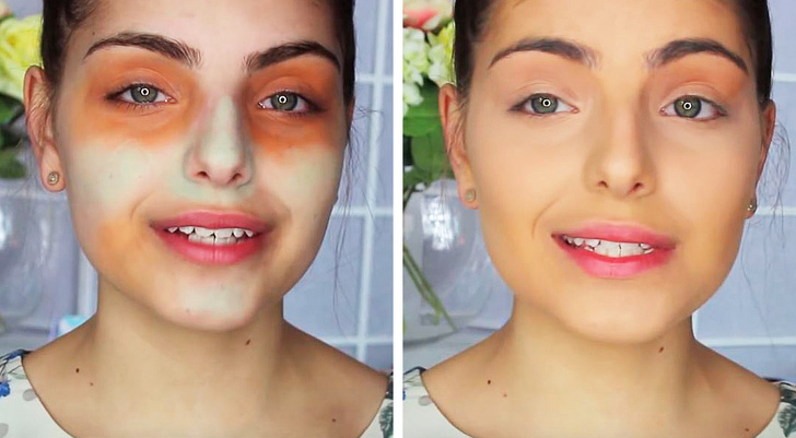 Το πορτοκαλί concealer θα πρέπει να χρησιμοποιείται για τους μαύρους κύκλους και την περιοχή γύρω από τα μάτια. Το πράσινο concealer βοηθά στην κάλυψη κηλίδων.Εφαρμόστε τα concealers,καλύψτε το πρόσωπο με την βάση make up ταμποναριστά ενώ στα μάτια θα βάλετε το κανονικό σας concealer.Τελειώστε με το καθημερινό μακιγιάζ σας.