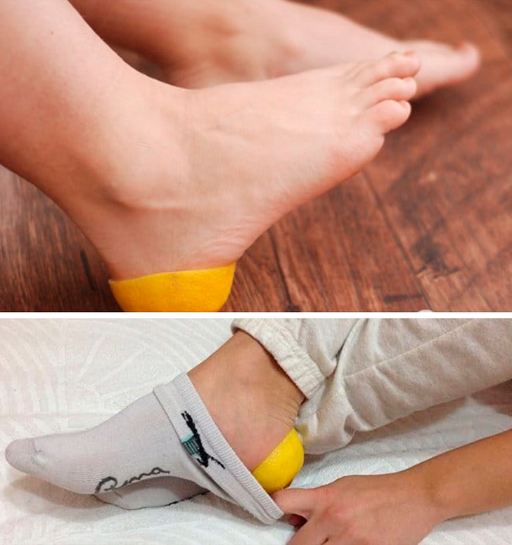 Πρέπει να κόψετε το λεμόνι,να το στύψετε (αφού δεν χρειάζεται τόσο πολύ χυμός) και να το βάλετε στη φτέρνα σας. Μετά φοράτε την κάλτσα σας. Αφήνετε για μισή ώρα, βγάζετε την κάλτσα και δεν χρειάζεται ούτε να καθαρίσετε την φτέρνα σας.