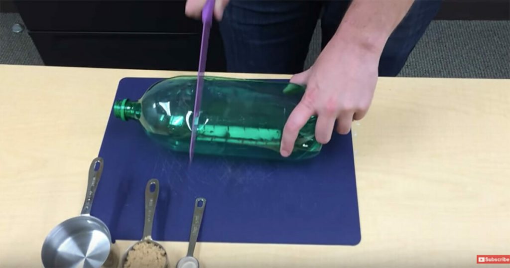 1. Κόψτε με ένα μαχαίρι το ένα τρίτο του μπουκαλιού, όπως δείχνει η φωτογραφία.