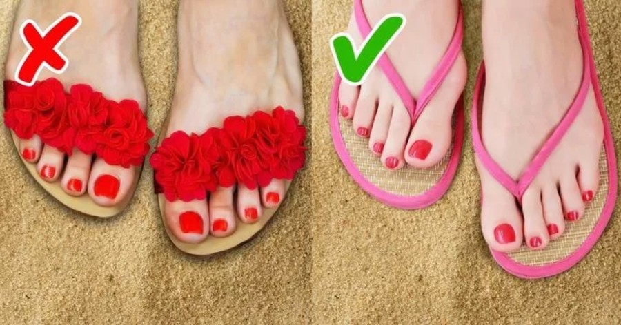 – Να βάλω σανδάλια ή σαγιονάρες; Τα φλατ σανδάλια κάνουν τα πόδια να φαίνονται μικρότερα, γι’ αυτό αν φοράτε μεγάλο νούμερο παπούτσι, προτιμήστε τα. Αποφύγετε, όμως, τα σανδάλια με έντονα σχέδια, βολάν ή κορδόνια στην περιοχή των αστραγάλων γιατί «κόβουν» το πόδι. Οι σαγιονάρες, από την άλλη, επιμηκύνουν τα πόδια και κάνουν τον αστράγαλο να φαίνεται πιο λεπτός, γι’ αυτό είναι ιδανικές για μικρόσωμες γυναίκες.