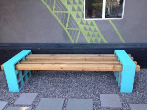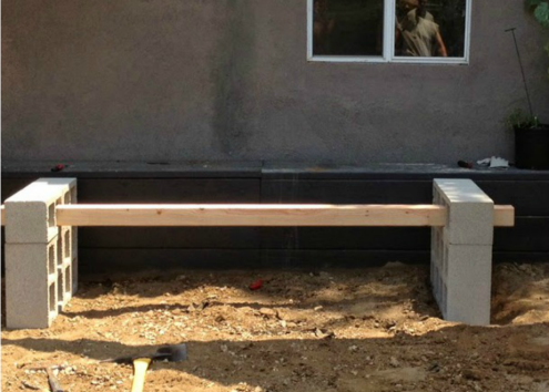 Αφού το τσιμέντο στεγνώσει τοποθετήστε τα 4 δοκάρια περνώντας τα από τις τρύπες των πλιθών. Με αυτό τον τρόπο έχετε ήδη δημιουργήσει ένα παγκάκι. Προαιρετικά μπορείτε να βάψετε τις πλίθες με χρώμα της επιλογής σας ξεφεύγοντας έτσι από το βιομηχανικό γκρι.