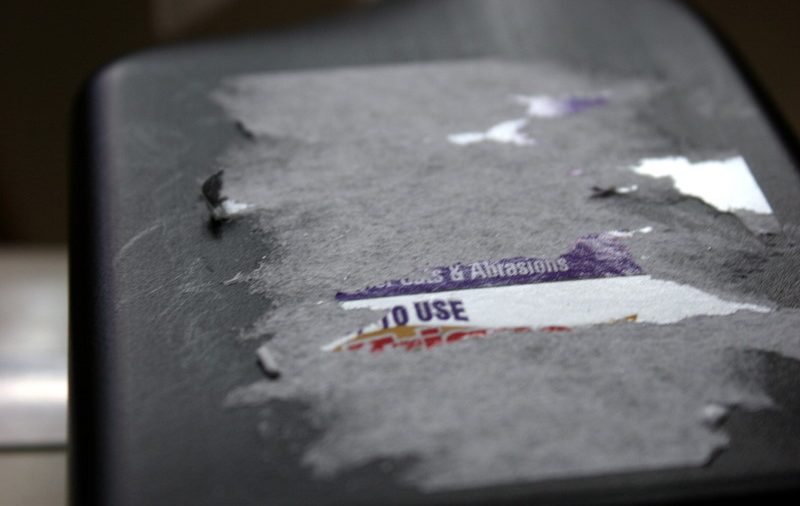 8. Απομακρύνετε τα αυτοκόλλητα, μουλιάζοντας την περιοχή που κόλλησαν για λίγα λεπτά, με οινόπνευμα