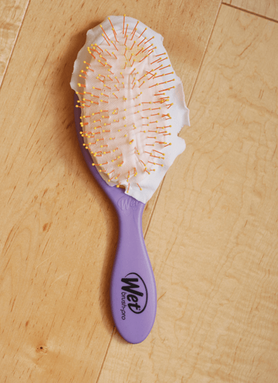 2. Τοποθετήστε ένα νάιλον στη βάση της βούρτσας. Όταν έρθει η ώρα να ξεφορτωθείτε τα μαλλιά, απλά βγάλτε το νάιλον.