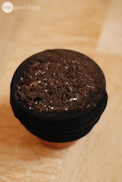 12. Βάλτε ένα κομμάτι καλσόν για να σουρώσετε το χώμα πριν το βάλετε στη γλάστρα.