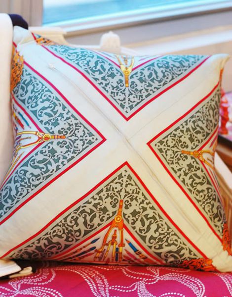 Χρησιμοποιώντας δύο όμορφα vintage φουλάρια μπορείτε να ντύσετε ένα μαξιλάρι για το σαλόνι ή το υπνοδωμάτιό σας. Το αποτέλεσμα θα σας ανταμείψει και επιπλέον θα έχετε φτιάξει ένα μαξιλάρι που θα είναι δική σας δημιουργία.