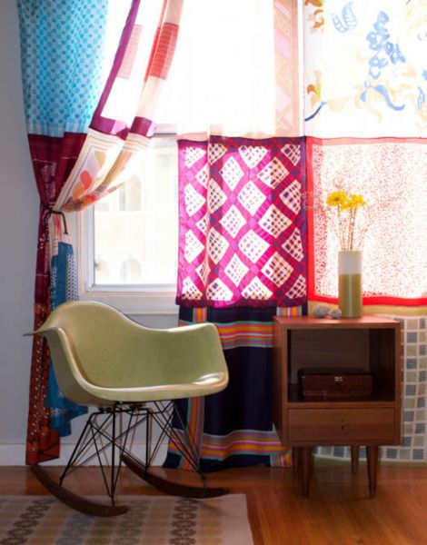 Άλλη μια ωραία ιδέα είναι η δημιουργία κουρτινών. Ενώστε τα αγαπημένα σας φουλάρια μεταξύ τους και φτιάξτε μια μεγάλη κουρτίνα για το υπνοδωμάτιο ή μια πιο μικρή για την κουζίνα.