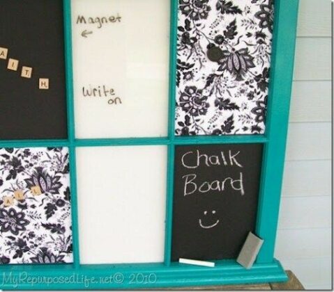 Μία ακόμη ιδέα είναι να τοποθετήσεις ένα ταμπλό στο πίσω μέρος του κουφώματος και να γεμίσεις το κάθε τετράγωνο με διαφορετικό χρώμα, ύφασμα, ή ακόμα και μοτίβα από πλακάκια. Επίσης μπορείς να κολλήσεις φωτογραφίες ή παραστάσεις στο πίσω μέρος του παραθύρου. Έτσι, θα φτιάξεις μοναδικούς πίνακες και θα εντυπωσιάσεις φίλους και γνωστούς με τις κατασκευές σου.