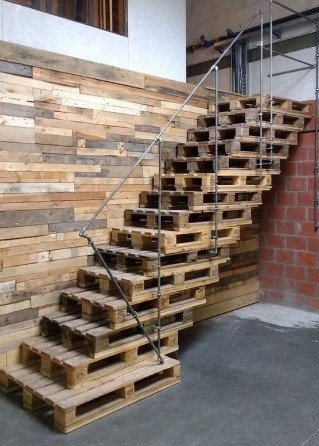– Σκάλα από παλέτες: Η σκάλα από παλέτες είναι μια έξυπνη πατέντα και λύση για το σπίτι σου, είτε προσωρινή είτε μόνιμη. Προϋποθέτει μεγάλο αριθμό από παλέτες όμως γενικά δε θα σε δυσκολέψει καθόλου στη κατασκευή!