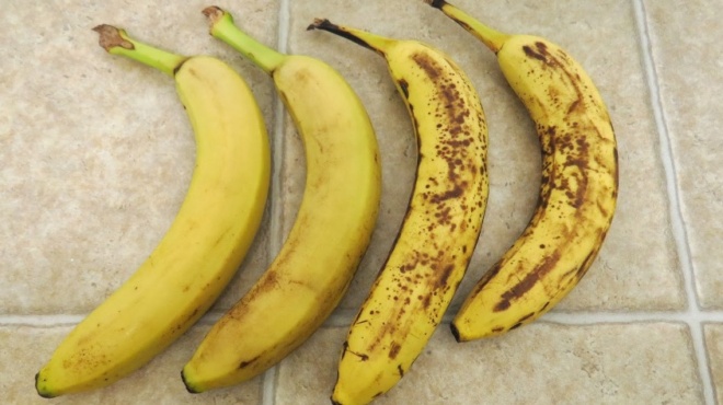 Κίτρινες μπανάνες – Χρήσιμες πληροφορίες: Πρόκειται για ώριμες μπανάνες, οι οποίες φέρουν μαύρες βούλες ή πιστιλιές επάνω τους. Οι συγκεκριμένες μπανάνες είναι πολύ καλύτερες από τις κίτρινες μπανάνες ή τις ελαφρώς πράσινες μπανάνες.