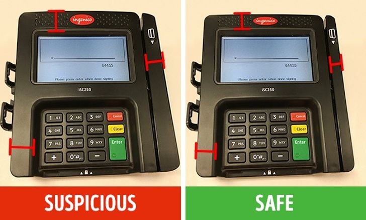 Ένα skimmer είναι μεγαλύτερο και φαρδύτερο από το το γνήσιο τερματικό για να μπορεί να περάσει τα στοιχεία σε αυτό. Γι ‘αυτό το skimming τερματικό είναι αισθητά μεγαλύτερο από ένα πραγματικό. Αυτό είναι το κύριο χαρακτηριστικό που βοηθά στην αναγνώριση ψευδών συσκευών.