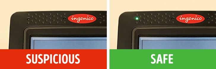 Ένα προσαρτημένο skimmer μπλοκάρει επίσης το πράσινο LED φωτάκι που πρέπει να ανάβει όταν το τερματικό σαρώνει την κάρτα.