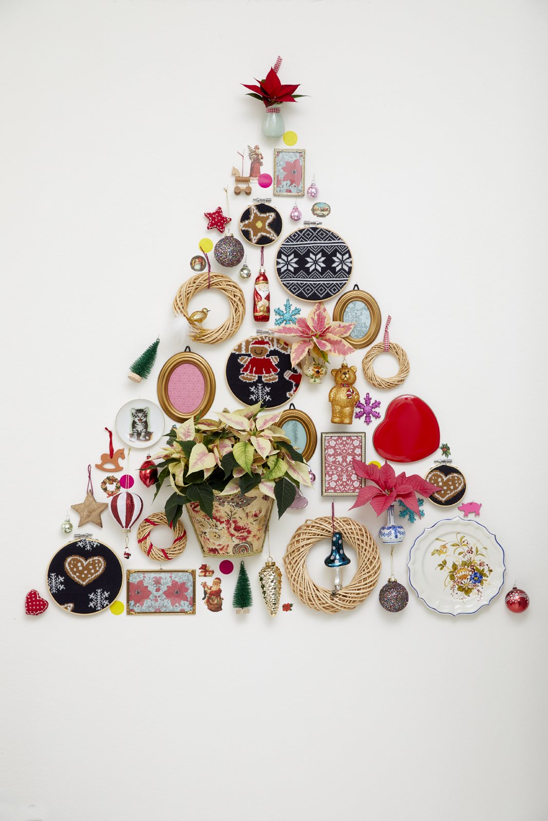 Με αυτό το χειροποίητο χριστουγεννιάτικο δέντρο από αλεξανδρινά και μια αταίριαστη συλλογή από παλιά στολίδια, μπορείτε να αφήσετε την φαντασία σας ελεύθερη. Αυτή η δημιουργική επιτοίχια κατασκευή είναι μια λύση για εξοικονόμηση χώρου για όποιον θέλει μια πρωτότυπη εναλλακτική λύση στο κλασικό χριστουγεννιάτικο δέντρο. Εκτός από τα αλεξανδρινά, τα τελάρα κεντήματος με χριστουγεννιάτικα μοτίβα είναι επίσης πραγματικά εντυπωσιακοί και μπορείτε να τα φτιάξετε σε λίγα μόνο βήματα.