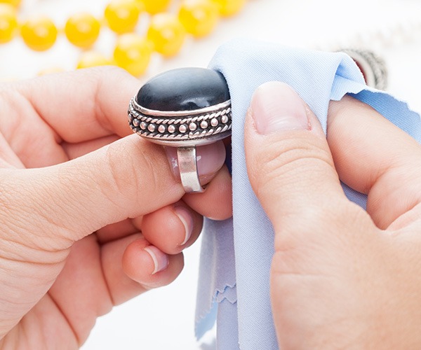 Τοποθετήστε το κόσμημα σας στο μπολ. Το μείγμα θα πρέπει να οξειδώσει το μαύρισμα από το κόσμημα. Το ασήμι από το αλουμινόχαρτο ή το μπολ θα επιμεταλλώσει τα φθαρμένα σημεία στο κόσμημα.